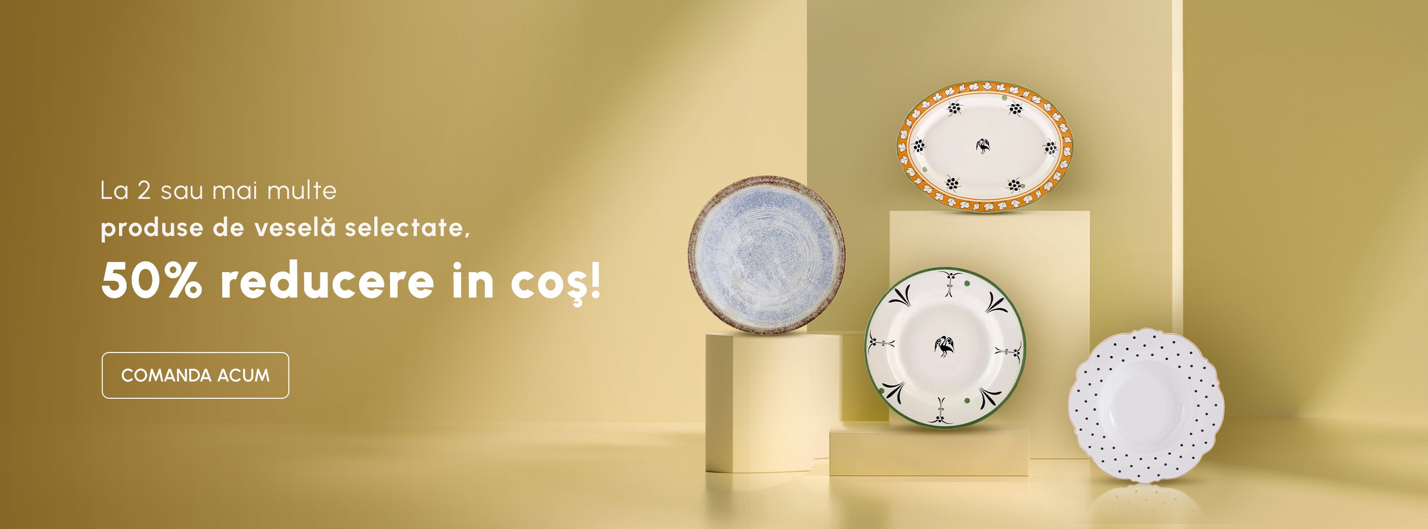 50% Reducere in coş La 2 sau mai multe produse de vesela selectate